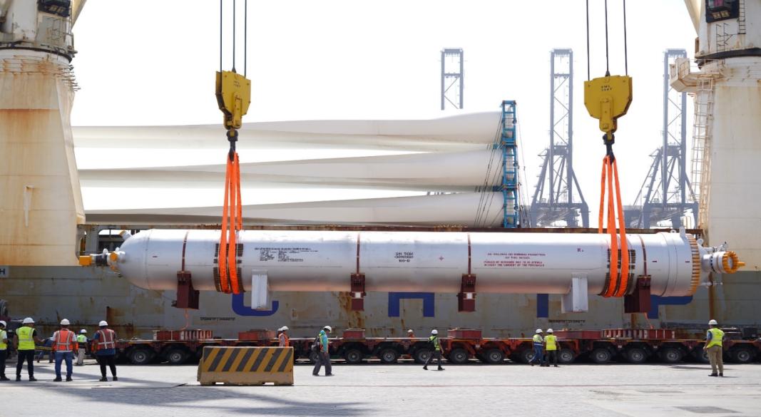 -انتهى-، المشغّل العالمي لميناء السخنة التابع للمنطقة الاقتصادية لقناة السويس، عن نجاحها في استقبال ومناولة معدة صناعية عملاقة من نوع أمونيا كونفرتر بطول يزيد عن 30 مترًا ووزن يفوق 500 طن، في عملية معقدة تؤكد قدرة الميناء على التعامل مع الشحنات الاستثنائية والضخمة بكفاءة عالية.