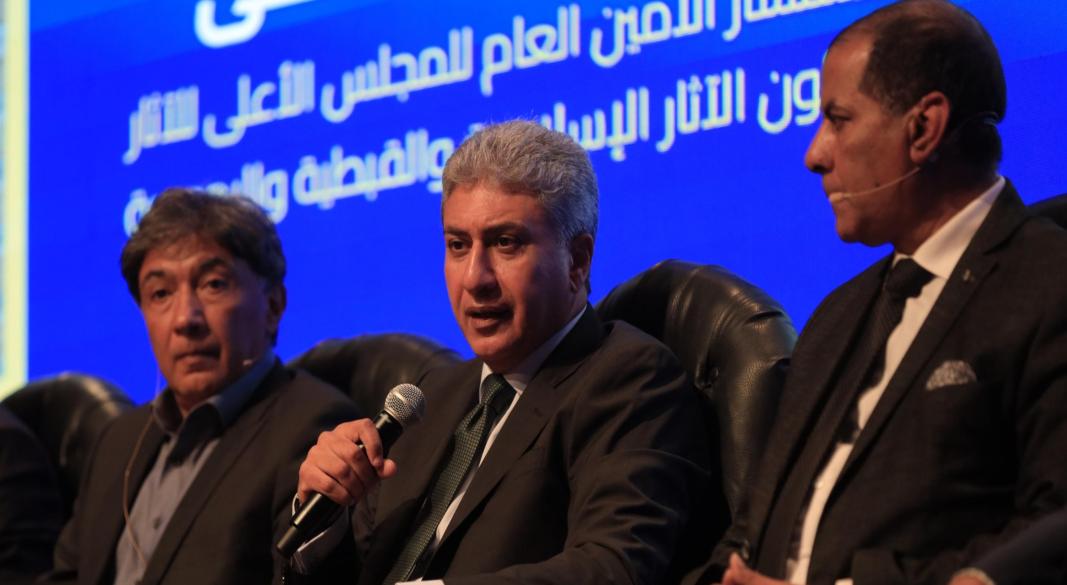 وخلال الجلسة، تحدث الدكتور جمال مصطفى عن جهود الوزارة ممثلة في المجلس الأعلى للآثار لتحقيق توازن حقيقي بين حماية الآثار والحفاظ على التراث وإعادة الإستخدام بالشكل الذي يخدم السياحة ويحقق عوائد اقتصادية دون الإضرار بالأثر.